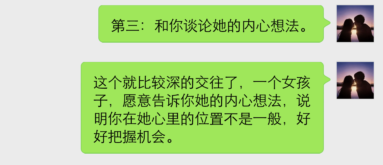 导语:之前关注我的兄弟都知道,追女生是不能轻易的去表白的,那么很多兄弟会问了,到底什么时候,时机才会成熟呢?其实,很多女生,在和男生接触的初期,都是保有一定的戒心,这是出于女性天生的自我保护。在和男生持续交往过程中,女生慢慢被男人吸引,随之慢慢放下了戒备心,这时候,就是男人发起总攻的绝佳时机,那么女生对男人放下戒备了,会有哪些表现呢?今天就跟兄弟们分析,什么时候,适合让你们的关系更进一步。