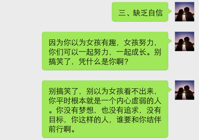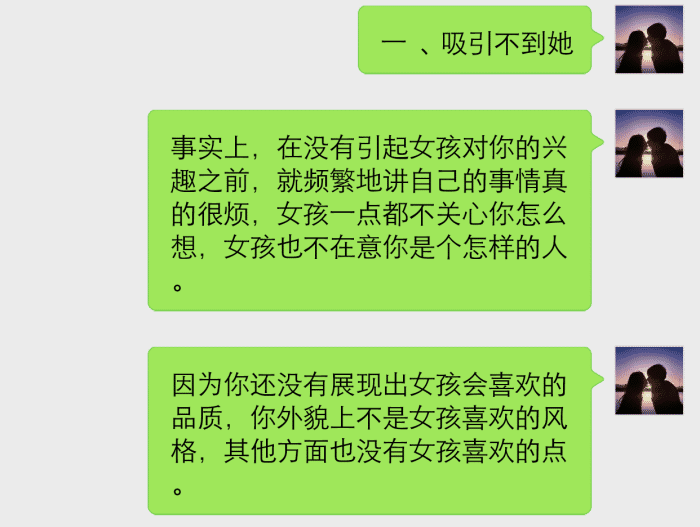 导语:经常听到有兄弟抱怨,无论怎么对女孩好,但她就是对自己不感冒,男人总是会觉得,是不是因为我没钱,是不是因为我长的不帅,是不是我对她还是不够好,所以没能感动女生。男人能够反思自己,这种想法是对的,也是可取的,但是反思的不在点上,你追不到女生,你单身,原因不是在于你的外在条件上,真正的原因,是男人经常犯一些很低级的错误,正因为很低级,所以他们经常意识不到,还认为自己做的是对的,于是就在错误的道路上越走越远。今天就带单身的兄弟们一起反思一下,你单身的原因,到底是什么?