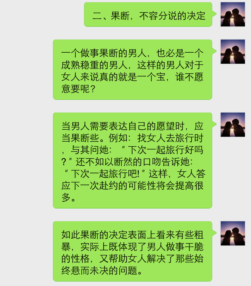 很多女人都有选择恐惧症,女人都是很不喜欢做选择的,如果男人也婆婆妈妈,那一起生活简直就是灾难。女人需要男人果断一点,主动去带领她,而她只需要在你身后依靠着女人,这才是女人想要。行事果断的男人,在女人看来男友力爆棚。