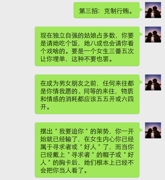 导语:很多男人,对于恋爱技巧嗤之以鼻,他们认为套路都是没用的,女人都只看钱,只看颜值,像他们这样长的丑,又没钱的男人,注定是要单身一辈子了。其实,女人都没有男人想的那么物质,不可否认,那些高富帅每个女人都喜欢,但是女人也很清楚生活中没有那么多高富帅,就算有也不一定能看上她,所以更多的女人,还是会选择一些普通的男人,所以,男人你可以长的丑,你也可以没钱,如果你再不会追女生套路,那就真的活该单身了。今天跟单身的兄弟们分享,追女生的套路。