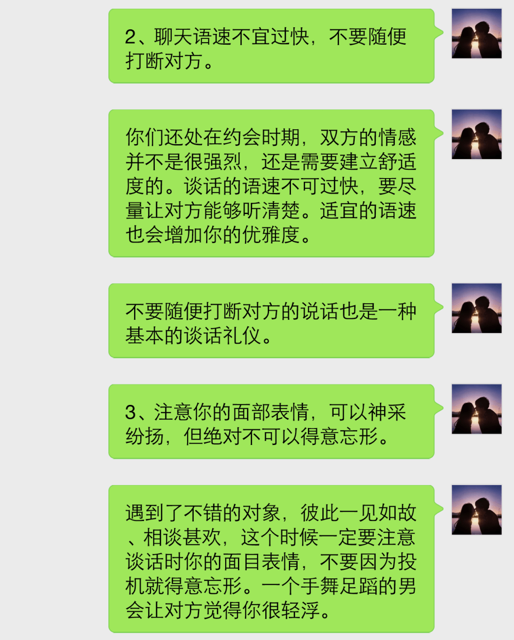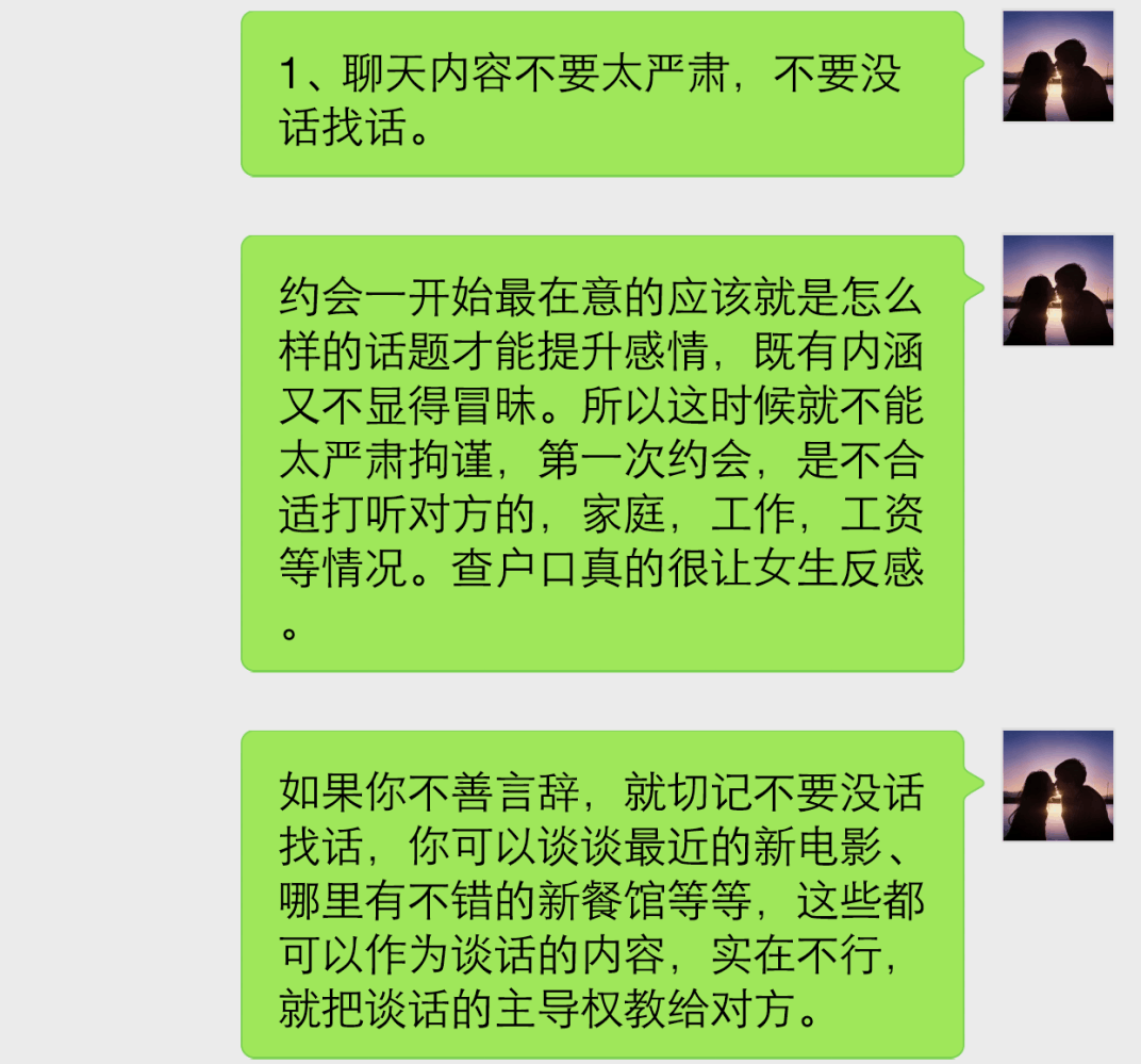 第一个:聊天内容不要太严肃,不要没话找话。
