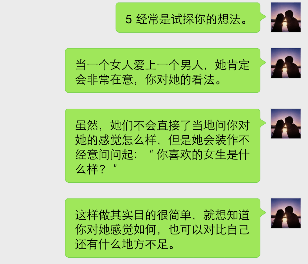 女人爱上你,她不知道你喜不喜欢她,所以她不敢向你表白,不过她会经常试探你,问你有没有喜欢的女生,试探你的感情状况。如果你身边的女人有这些表现,而你正好也喜欢她,那么恭喜你,美好的爱情在等着你,男人这时候就应该主动点。